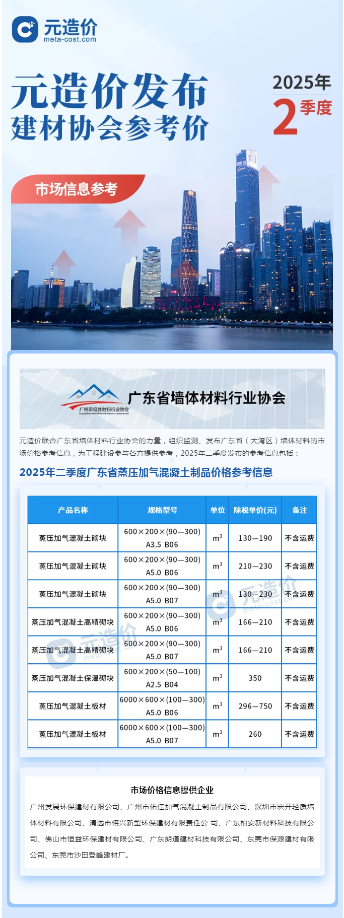 免费查阅 | 广东省2025年第二季度蒸压加气混凝土制品参考信息已经发布!