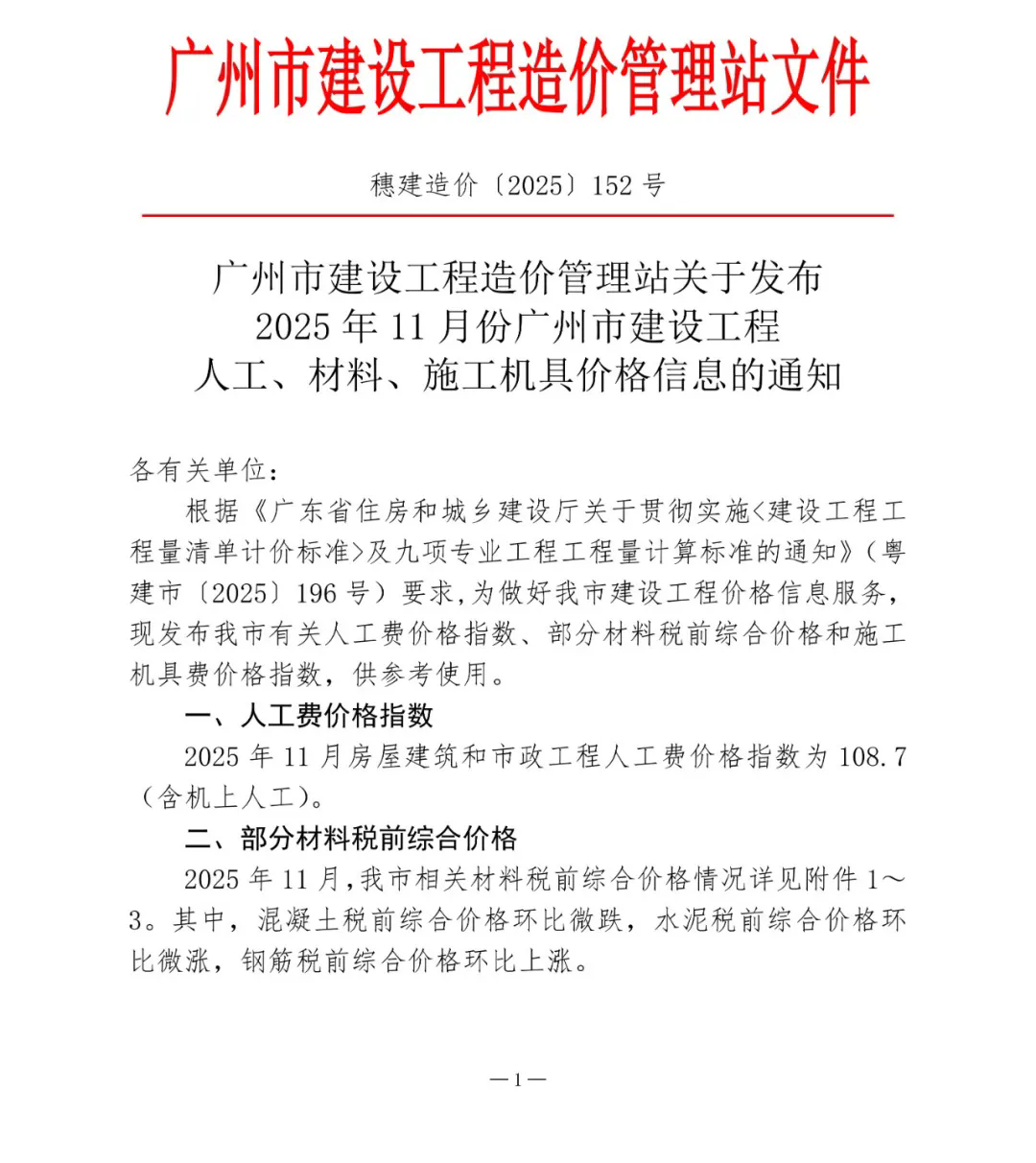来源 广州市建设工程造价管理站